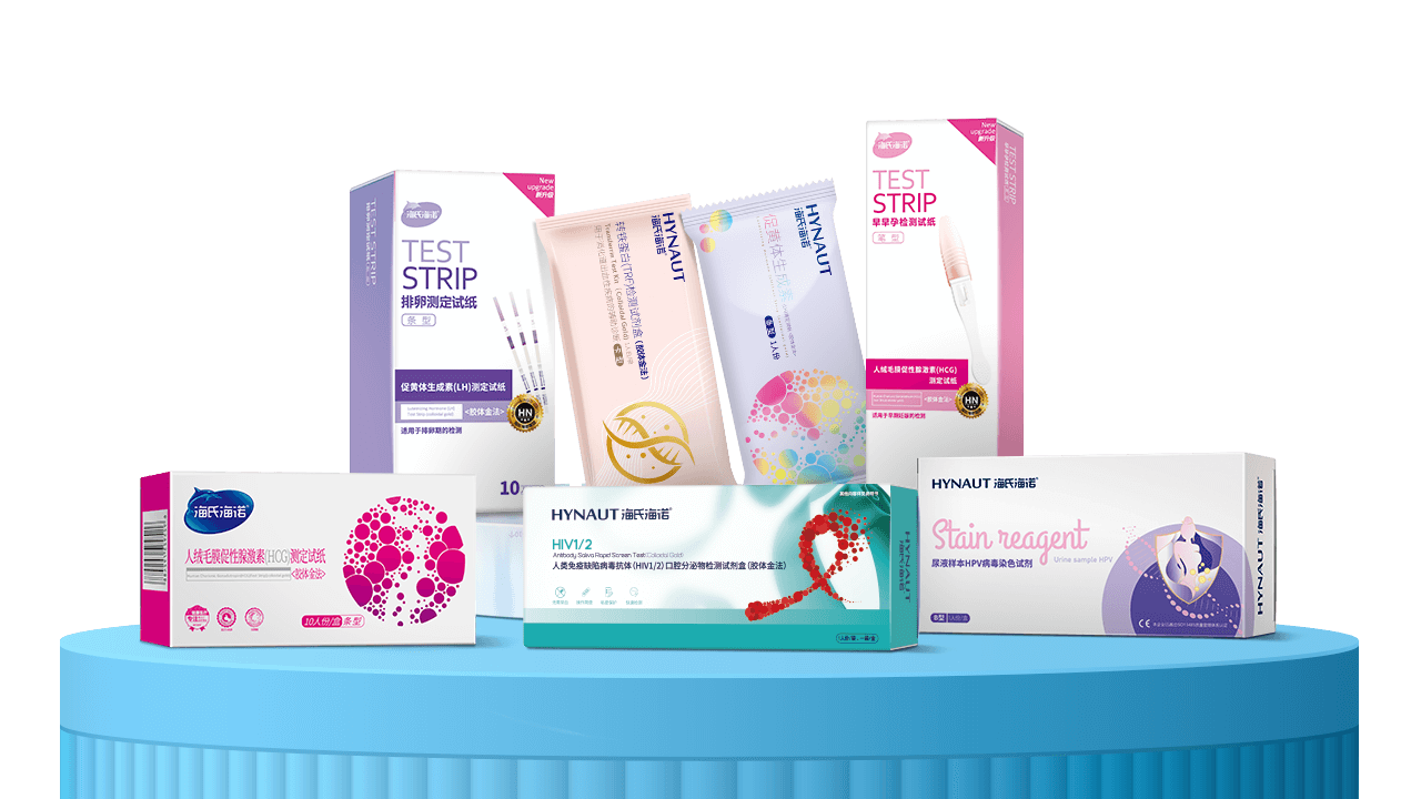 海氏海諾試紙檢測的產品,操作簡便快速、結果直觀易讀、特異性較高、成本低、便于攜帶和現場檢測。產品包含:早孕試紙、早早孕試紙、排卵試紙、尿常規試紙、HPV病毒染色試劑、HIV測試等產品。